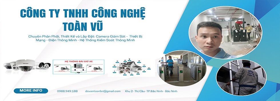 Công ty TNHH Công Nghệ Toàn Vũ chuyên cung cấp và lắp đặt Camera giám sát, điện thông minh, hệ thống mạng máy tính, hệ thống kiểm soát ra vào, hệ thống bãi đỗ xe thông minh. Công ty là đại lý chính thức của nhiều hãng Camera trong nước và nước ngoài như: Vantech, Samtech, Dahua,Hikvison, Benco...Đồng thời là đại lý của các hãng máy tính như: GYGABYTE, DELL, INTELL, ACER, LENOVO, FPT ELEAD, CMS, MSI,...; Là đại lý phân phối các sản phẩm, thiết bị tin học khác : Máy in, máy photocoppy, máy chiếu, máy quét, thiết bị mạng, camera , máy ảnh, lưu điện, linh kiện vi tính ... của các hãng như: SAMSUNG, LG, HP, CANON, INTEL, DELL, GYGABYTE, ASUS, SANTAK, CISCO,TP-LINK, PLANET, MICRONET, SURCOM, D-Link, ACER, MSI, GSKILL, Kingtons, Kingmax....